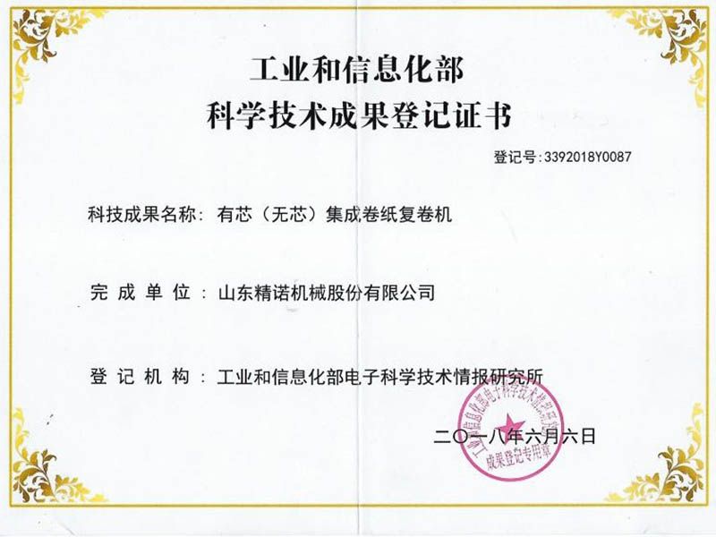 科學技術(shù)成果登記證書